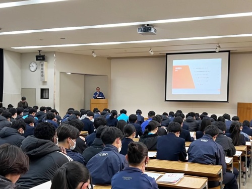 総合的探究の時間において、山梨通運株式会社様から講師をお招きし、物流の現状とこれからの課題について講演していただきました😉