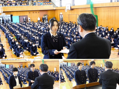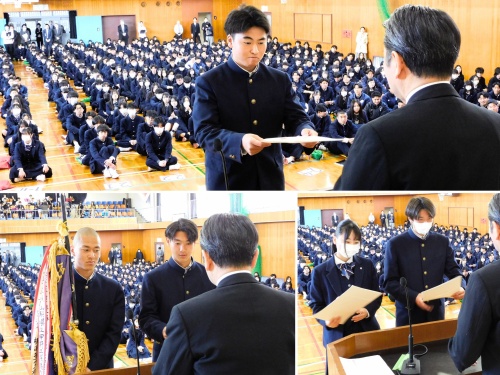 各部活動から、冬季各種大会での輝かしい結果報告を受け、全国選抜大会に挑む選手に向けて壮行会を行いました💪